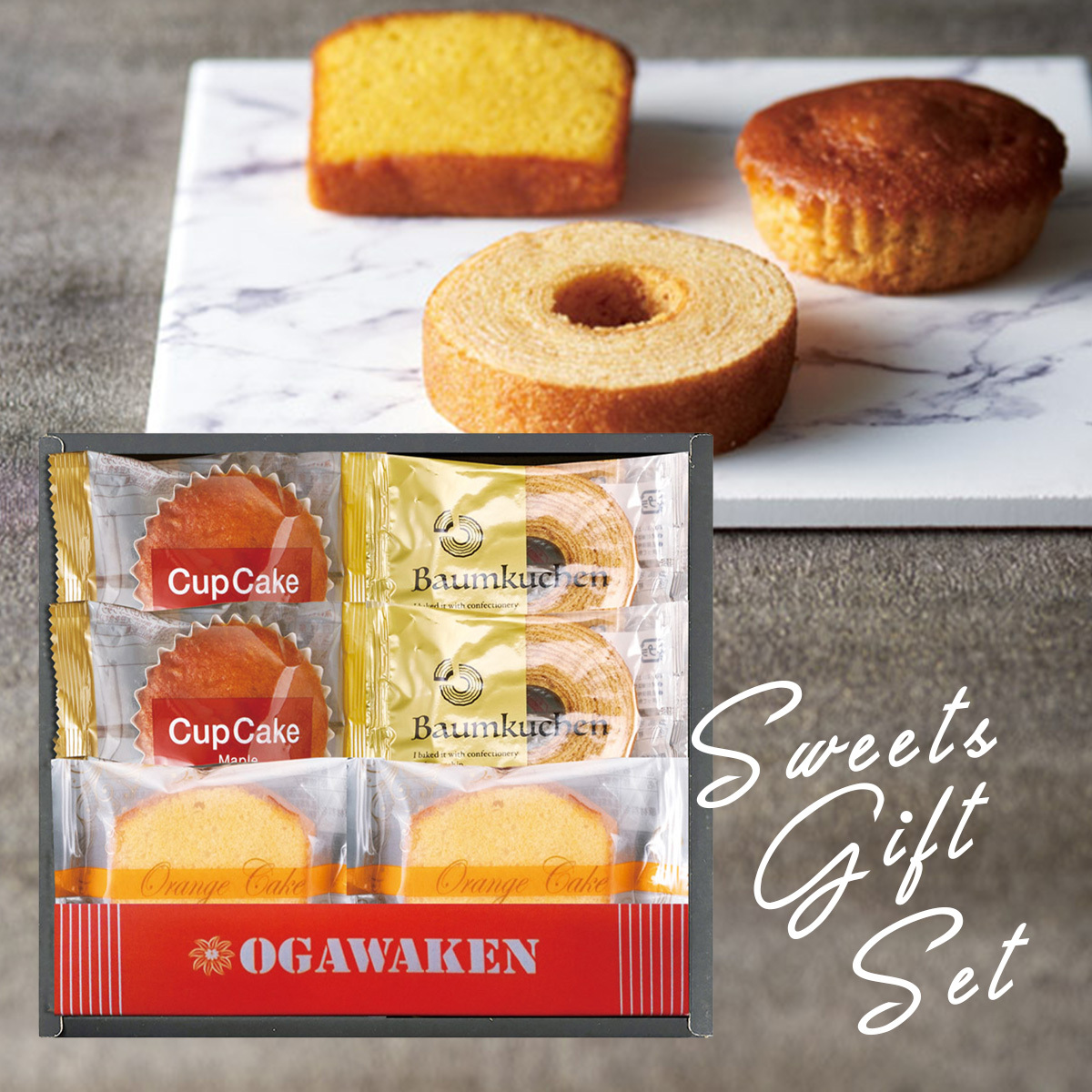 セット内容:オレンジケーキ・バウムクーヘン・ カップケーキ(メープル)×各2