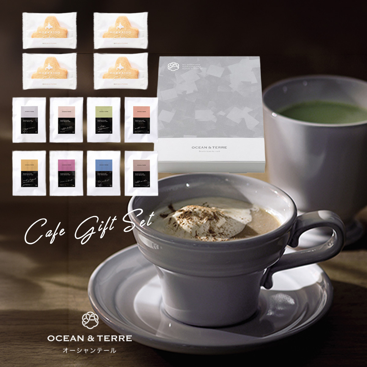 かわいい北海道の形のクッキーと、8種類の異なるカフェを詰合せた贅沢なティータイムギフトです。
