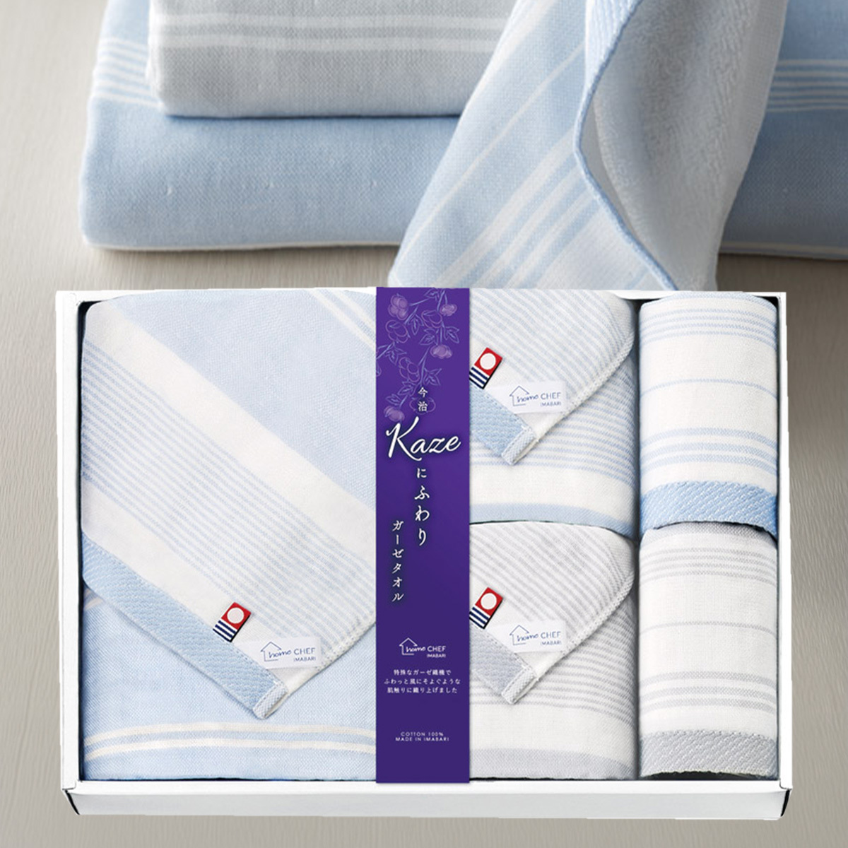【お取寄商品】ガーゼ&パイルの軽量今治産タオル(ハンド2P・フェイス2P・バス1P)